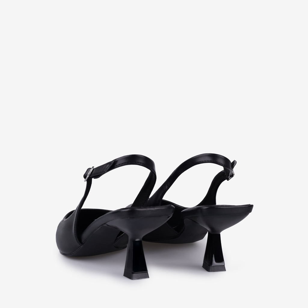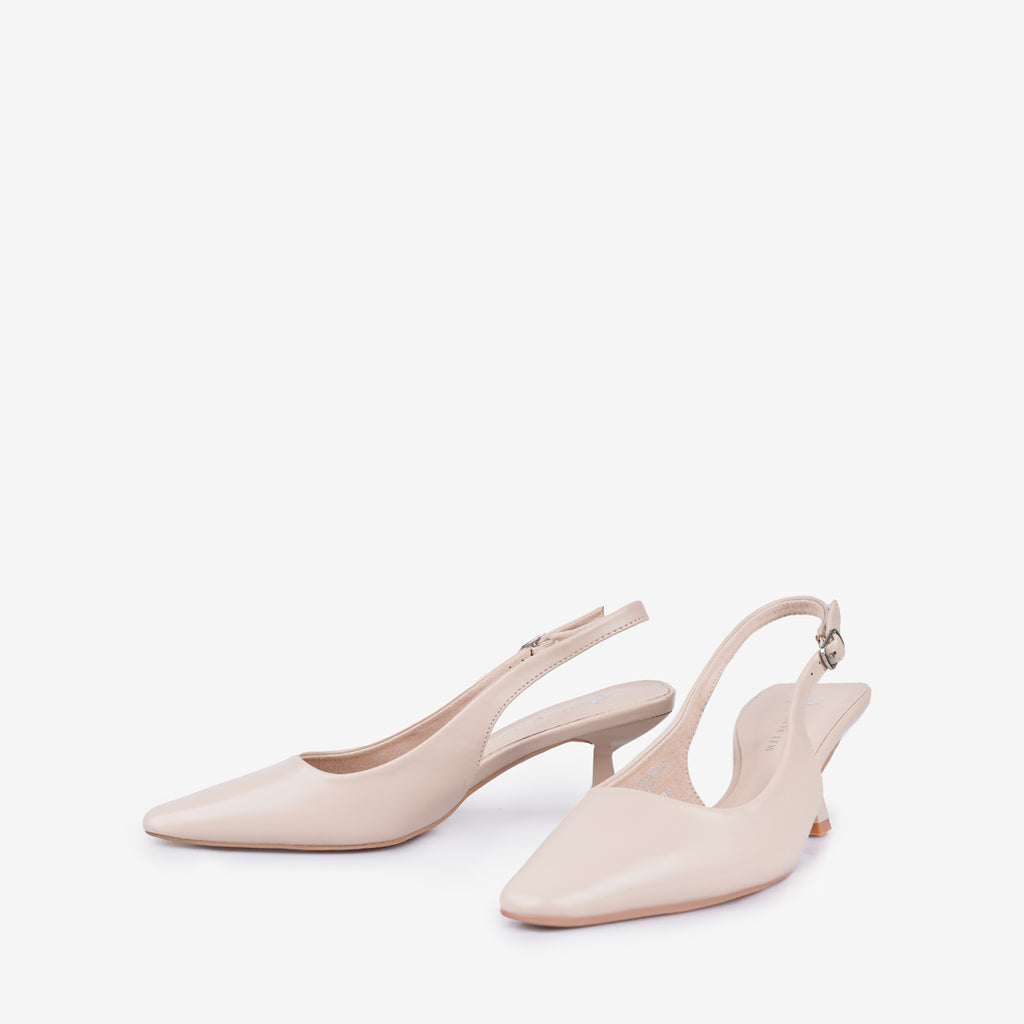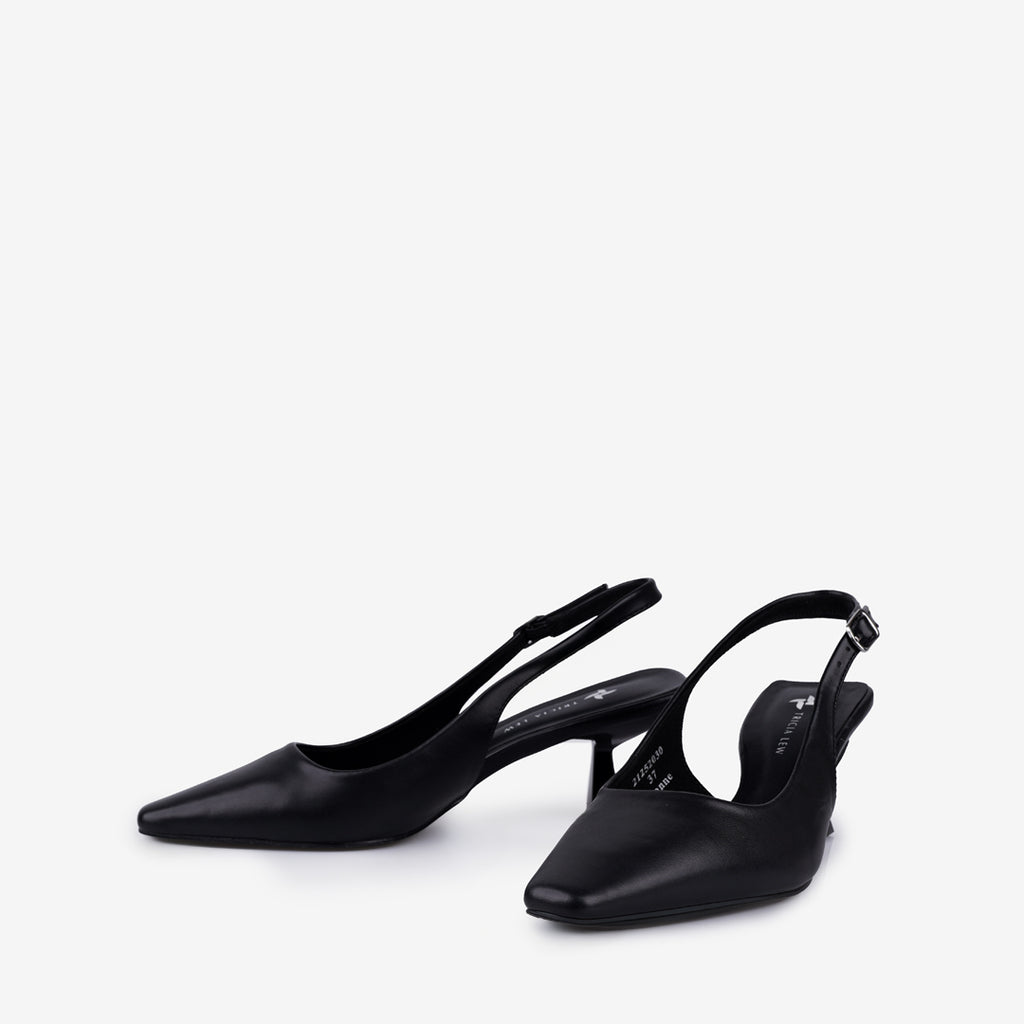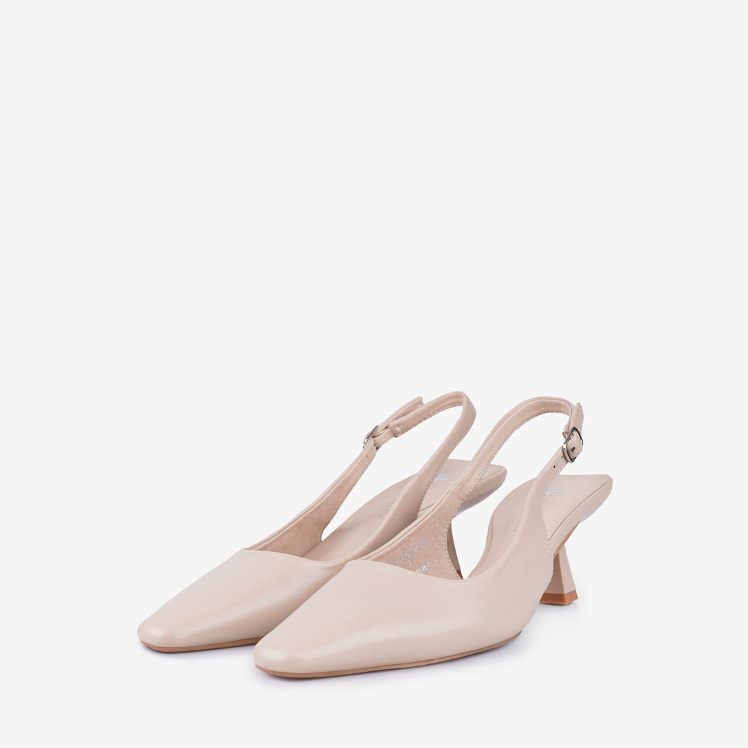 Step out in modern sophistication with the Jeanne Women's Heels. These chic slingbacks feature a sleek square toe and a stylish, sculpted 2.5-inch kitten heel. Crafted from smooth Matte Polyurethane Leather with a comfortable Microfiber Insole and non-slip outsole, they are the perfect blend of fashion and function for work or weekend. Available in classic Black and versatile Light Nude.