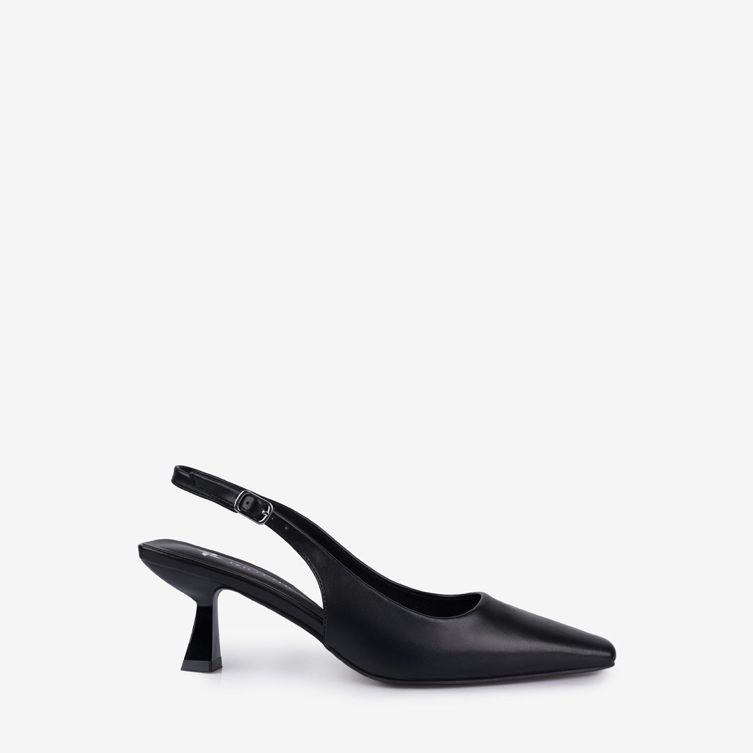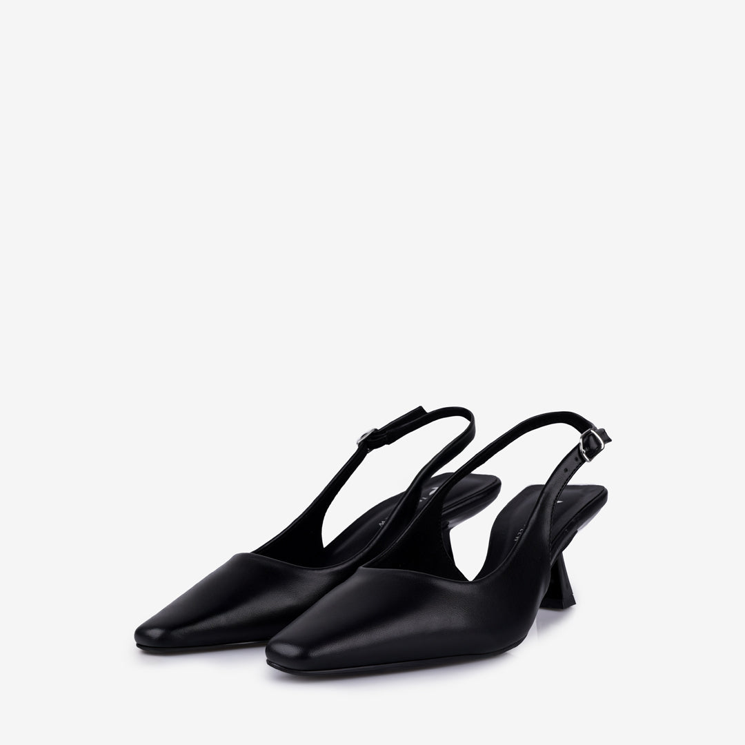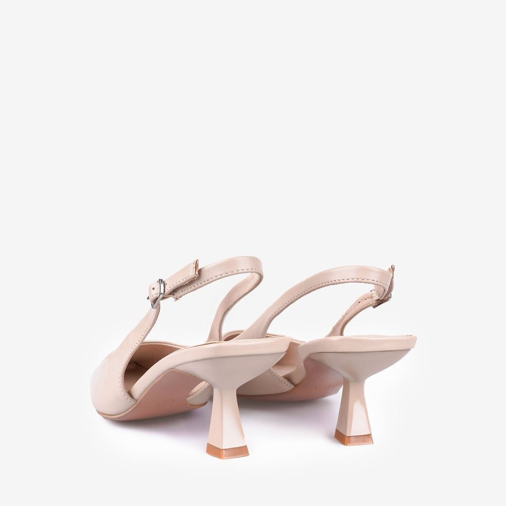Step out in modern sophistication with the Jeanne Women's Heels. These chic slingbacks feature a sleek square toe and a stylish, sculpted 2.5-inch kitten heel. Crafted from smooth Matte Polyurethane Leather with a comfortable Microfiber Insole and non-slip outsole, they are the perfect blend of fashion and function for work or weekend. Available in classic Black and versatile Light Nude.