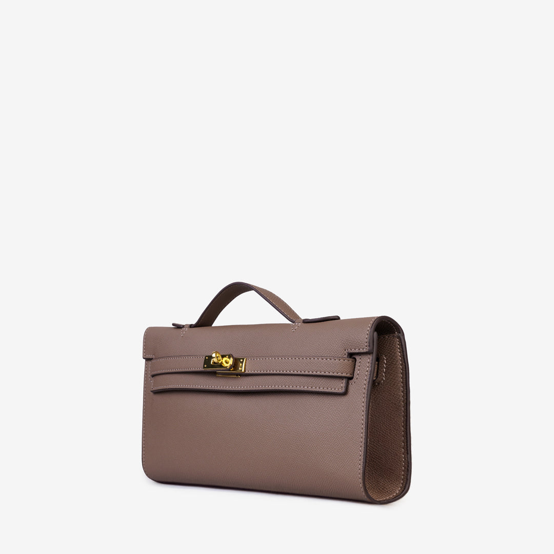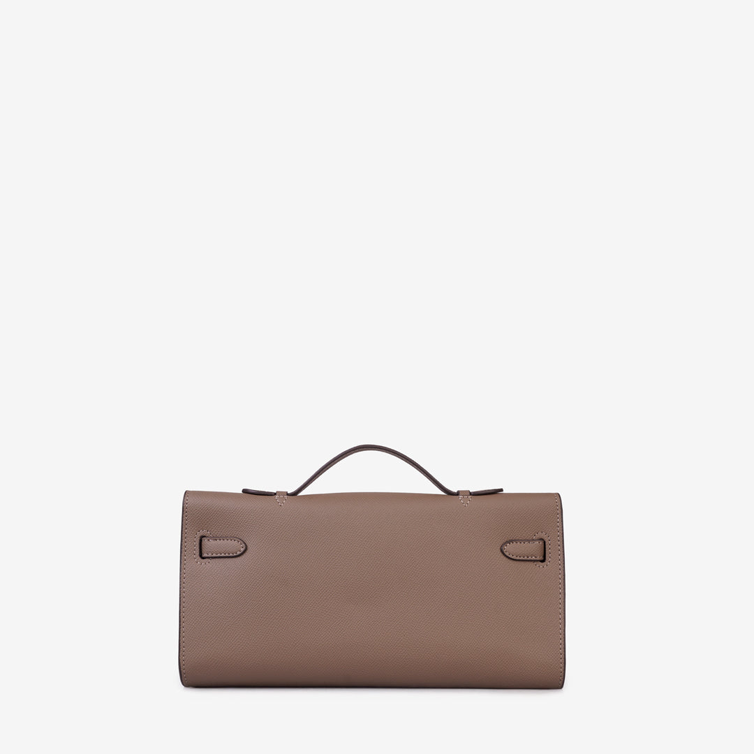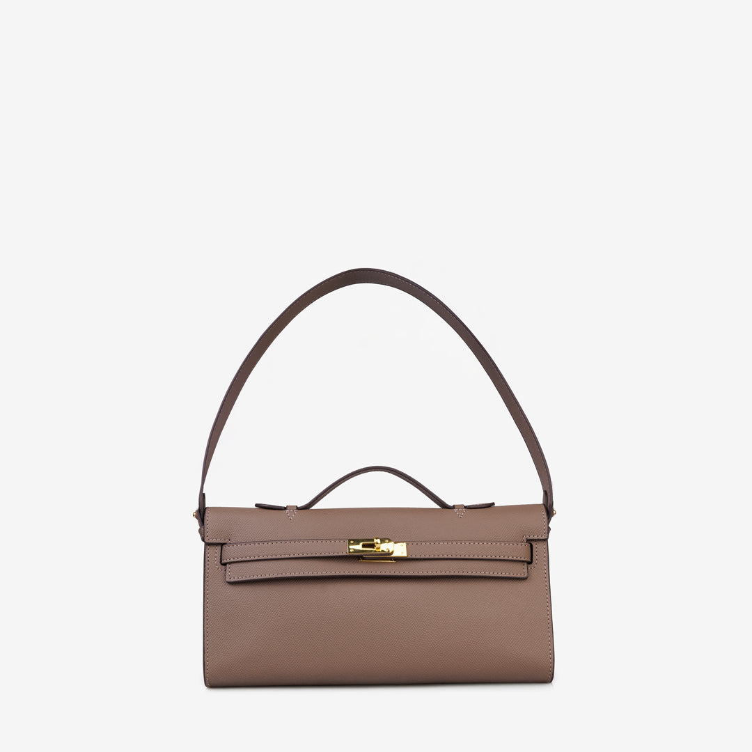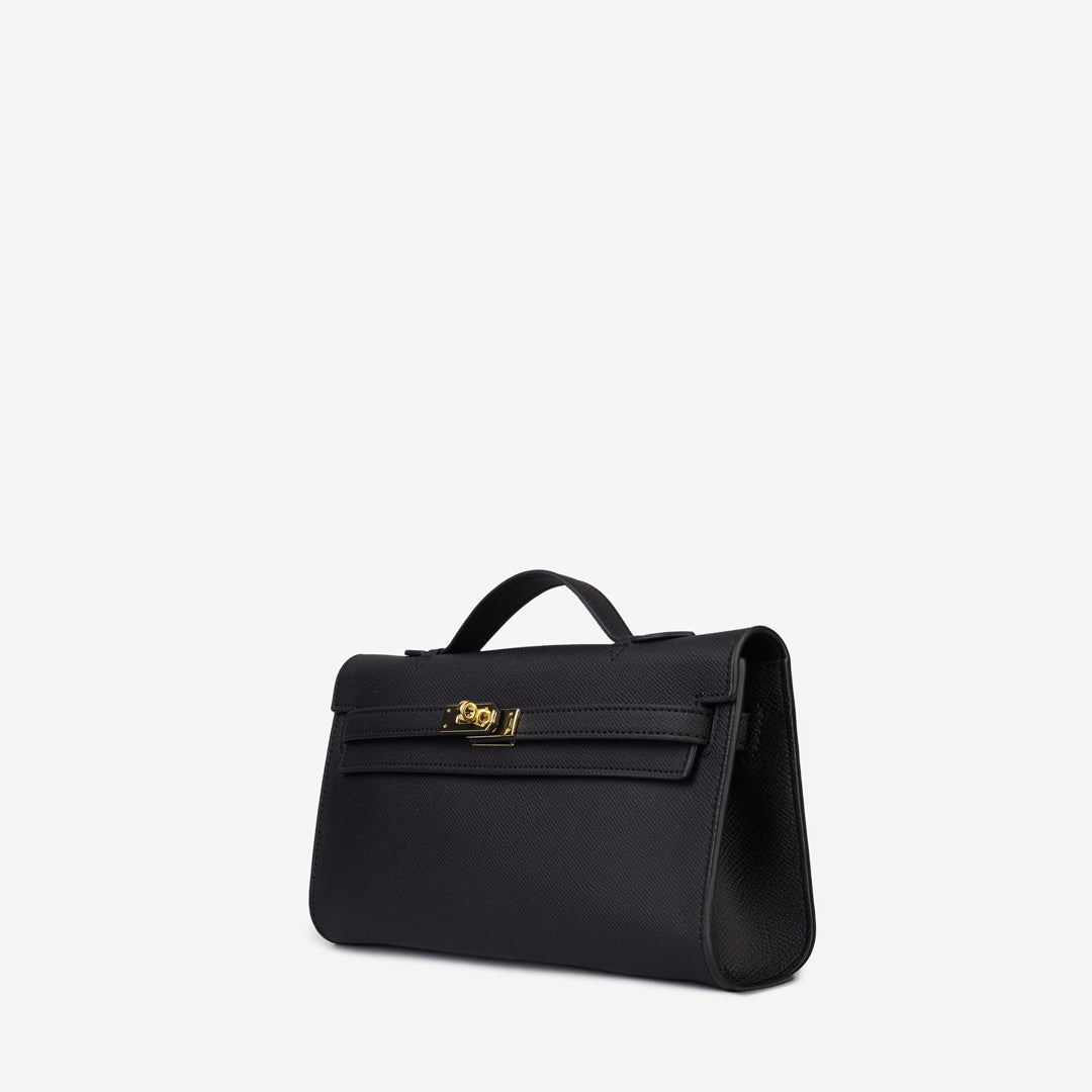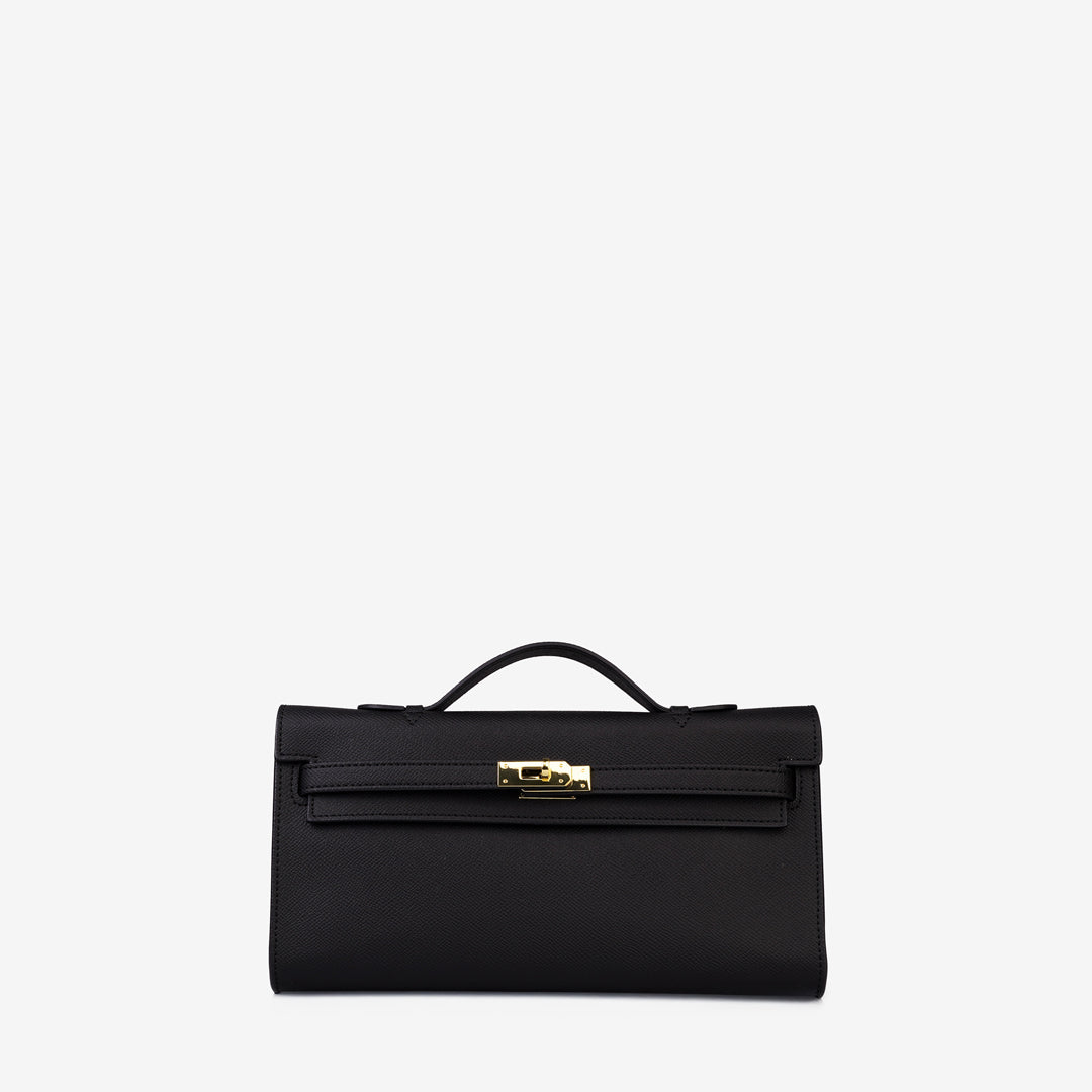 The Lewré Verna Top Handle Handbag is a sleek, elongated silhouette designed for the modern minimalist. This handbag combines a professional aesthetic with a touch of classic charm, making it a versatile choice for both office wear and evening outings.