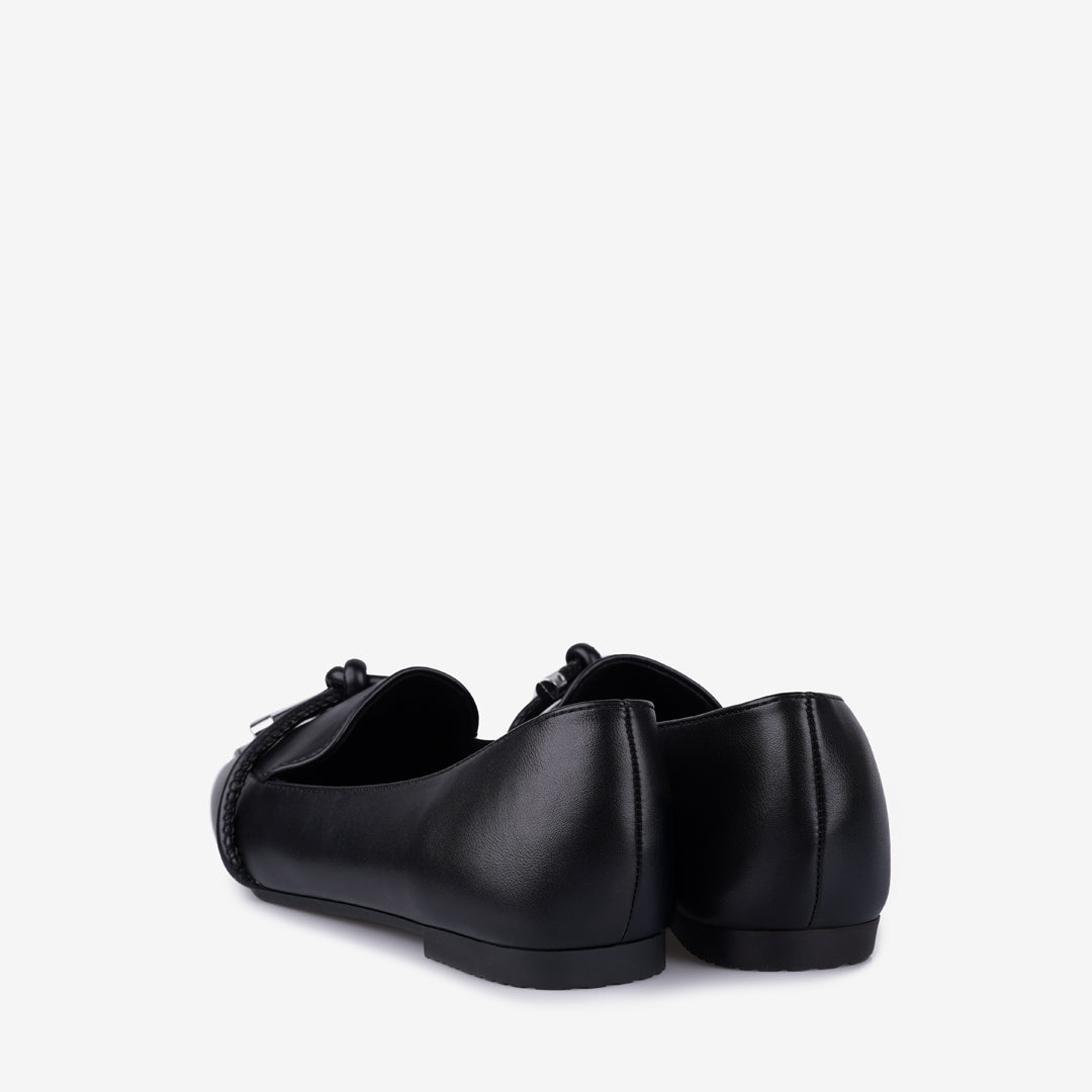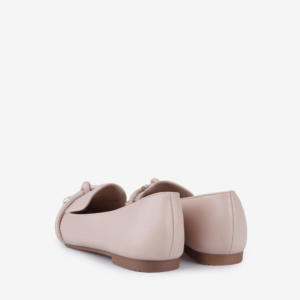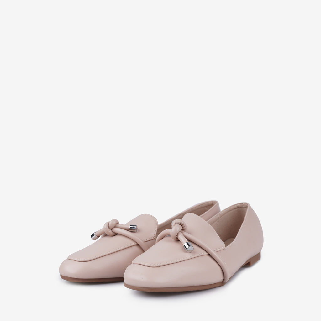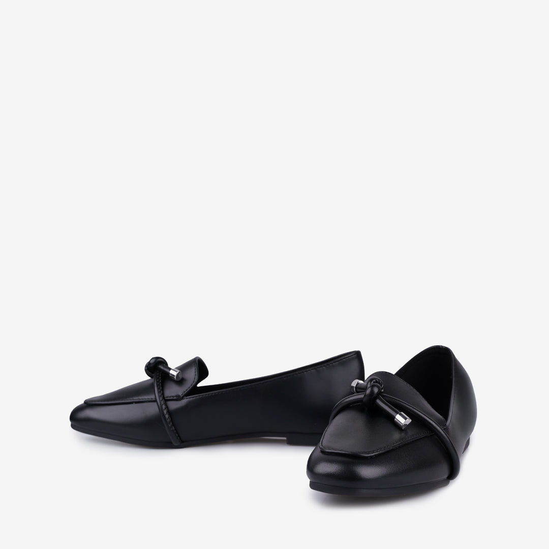 Upgrade your everyday comfort with the Tricia Lew Ashton Women's Flats. These chic loafers feature a modern, pointed-toe design and a decorative knot detail with metallic accents on the vamp. Crafted from smooth Matte Polyurethane Leather with a soft Microfiber Insole and non-slip outsole, they blend sophisticated style with all-day wearability. Available in classic Black and soft Nude Pink.