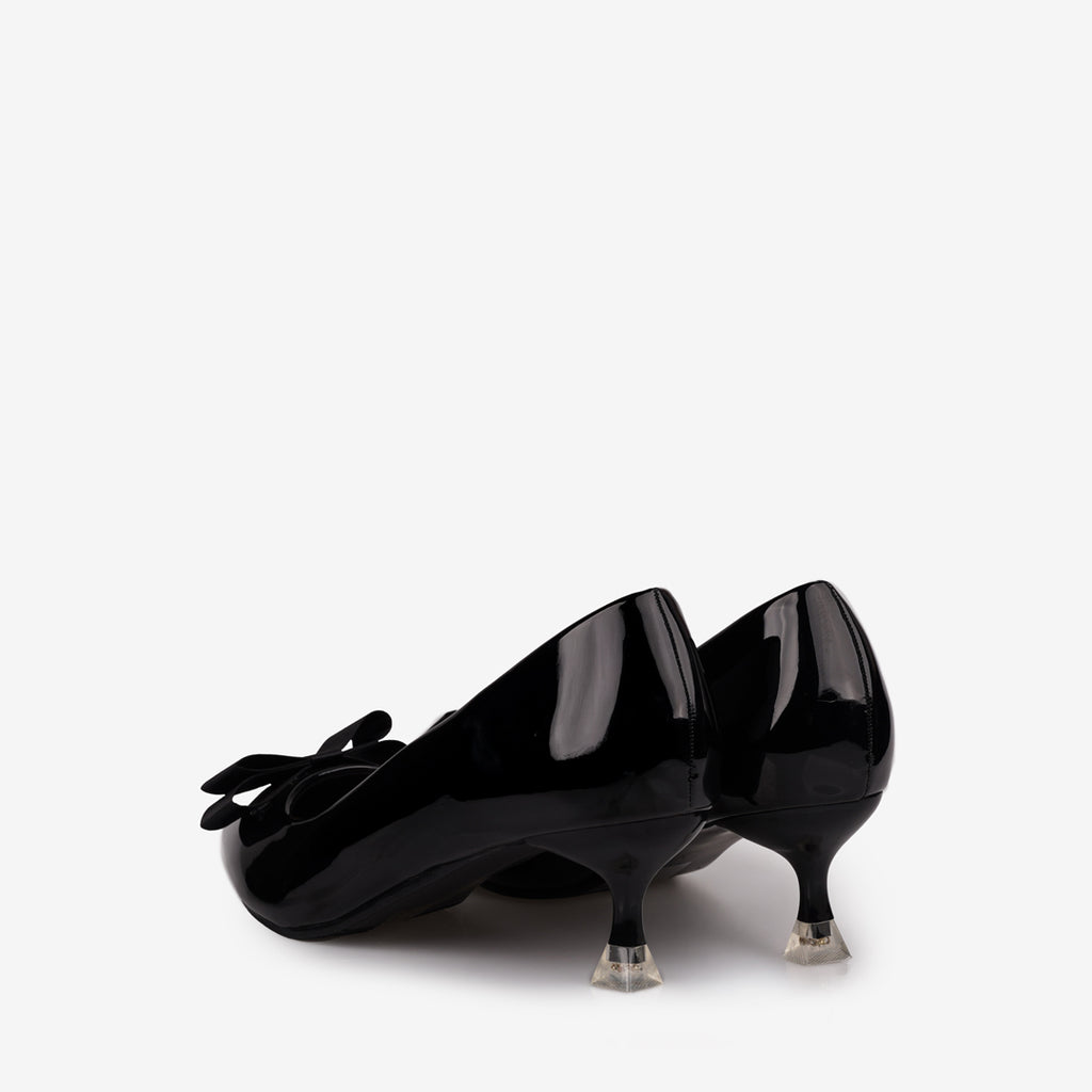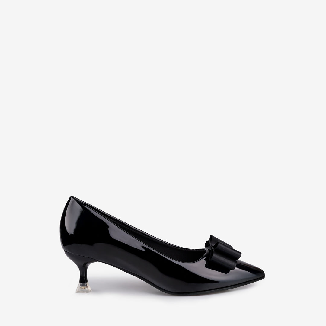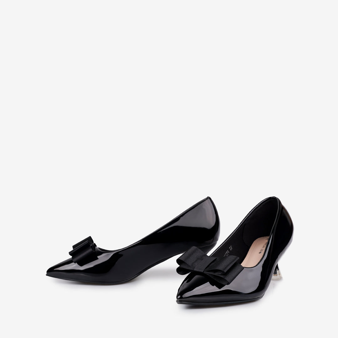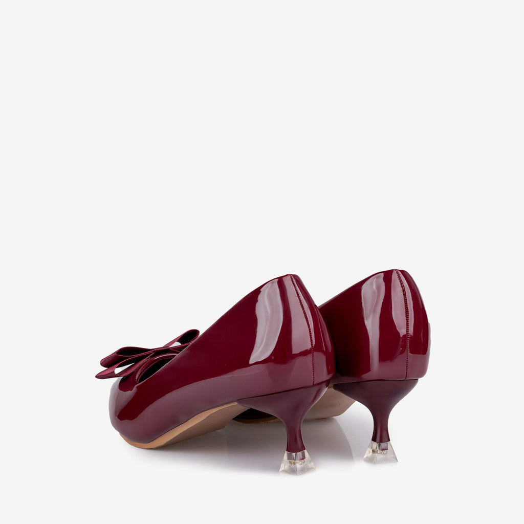 The Hedda Women's Heels by Tricia Lew are a sophisticated choice, crafted with a glossy Faux Patent Leather upper and a decorative bow accent. They feature a flattering pointed toe and a comfortable 2-inch heel. The shoes prioritize wearability with a soft Microfiber insole and a stable non-slip outsole. Available in classic Black & Wine.