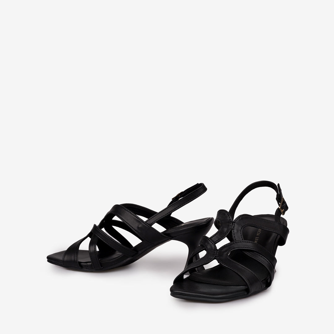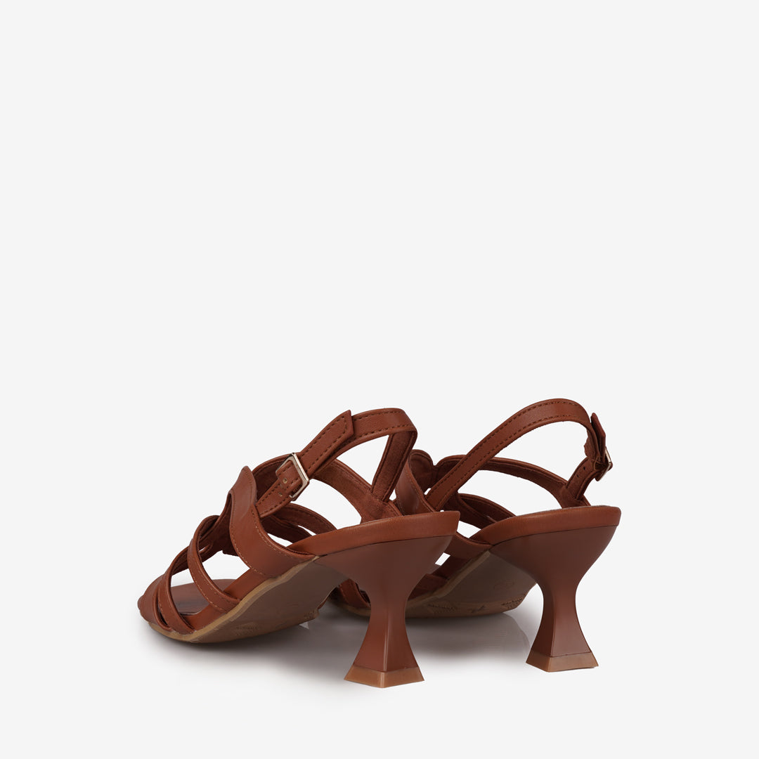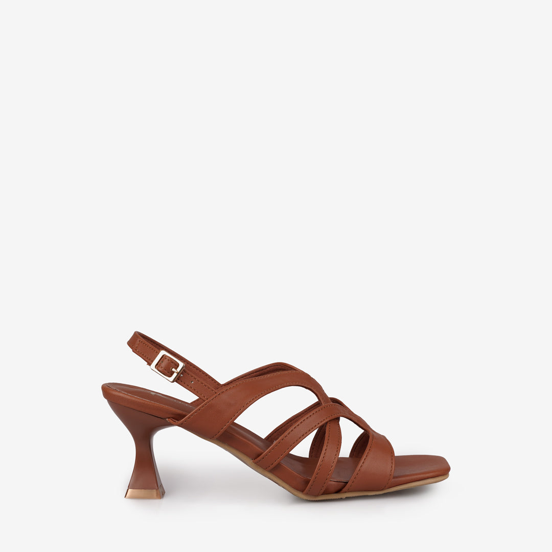 Tricia Lew Sereia Women's Heels by Tricia Lew are a stylish slingback sandal featuring a multi-strap Matte Polyurethane Leather upper and a contemporary, flared 2.5-inch heel. Designed for comfort, they include a soft Microfiber insole and a secure non-slip outsole. These sandals are available in versatile Black & Camel.